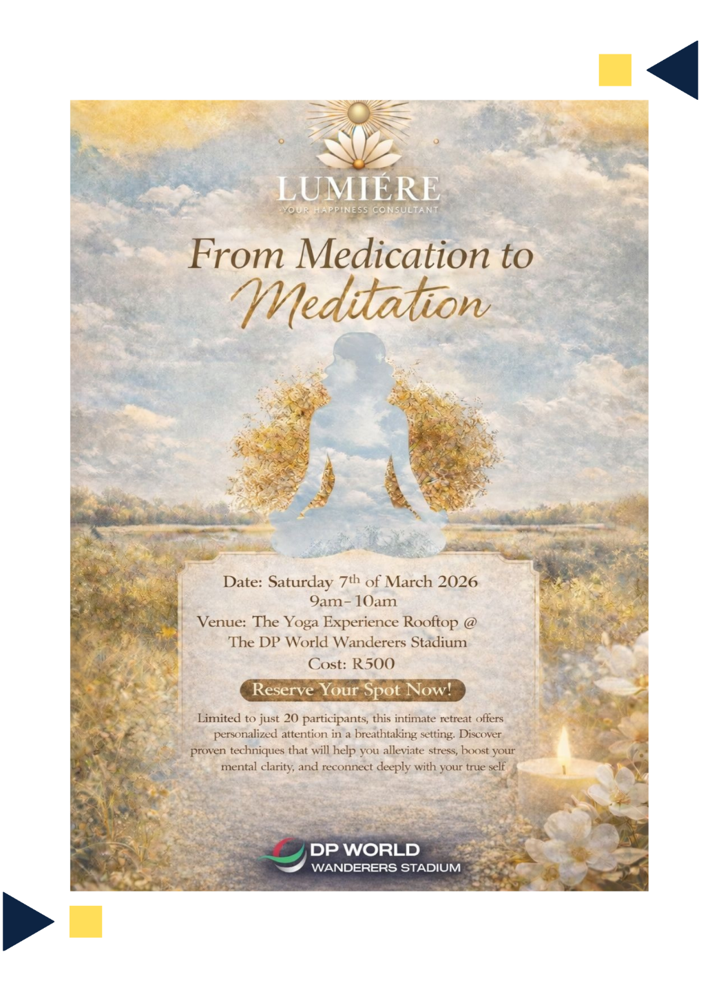 Venue:Ā The Yoga Experience Rooftop @ The DP World Wanderers Stadium