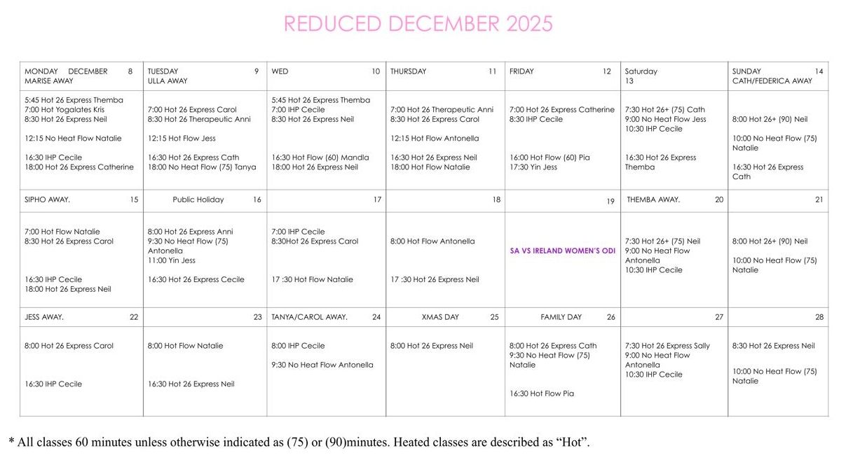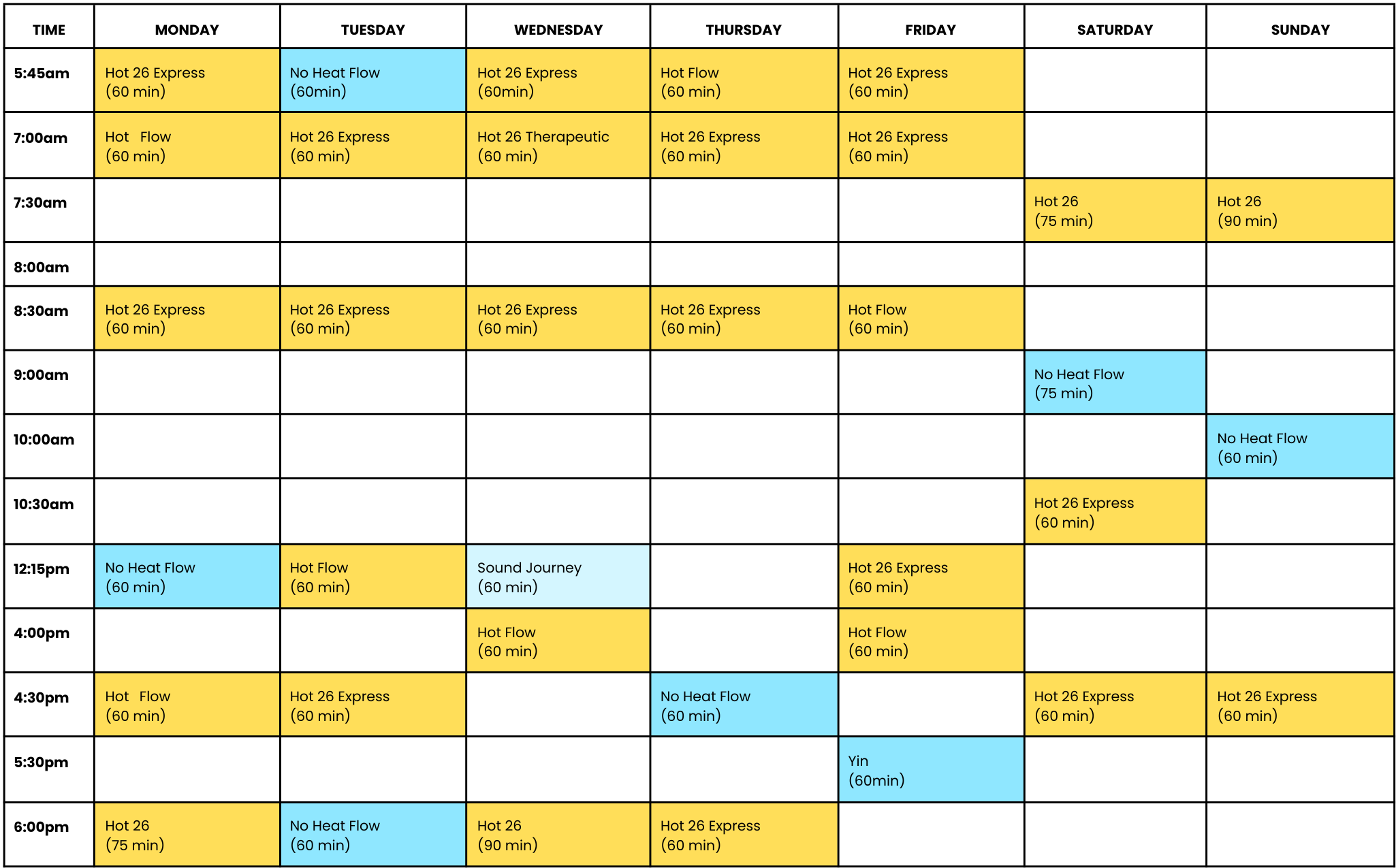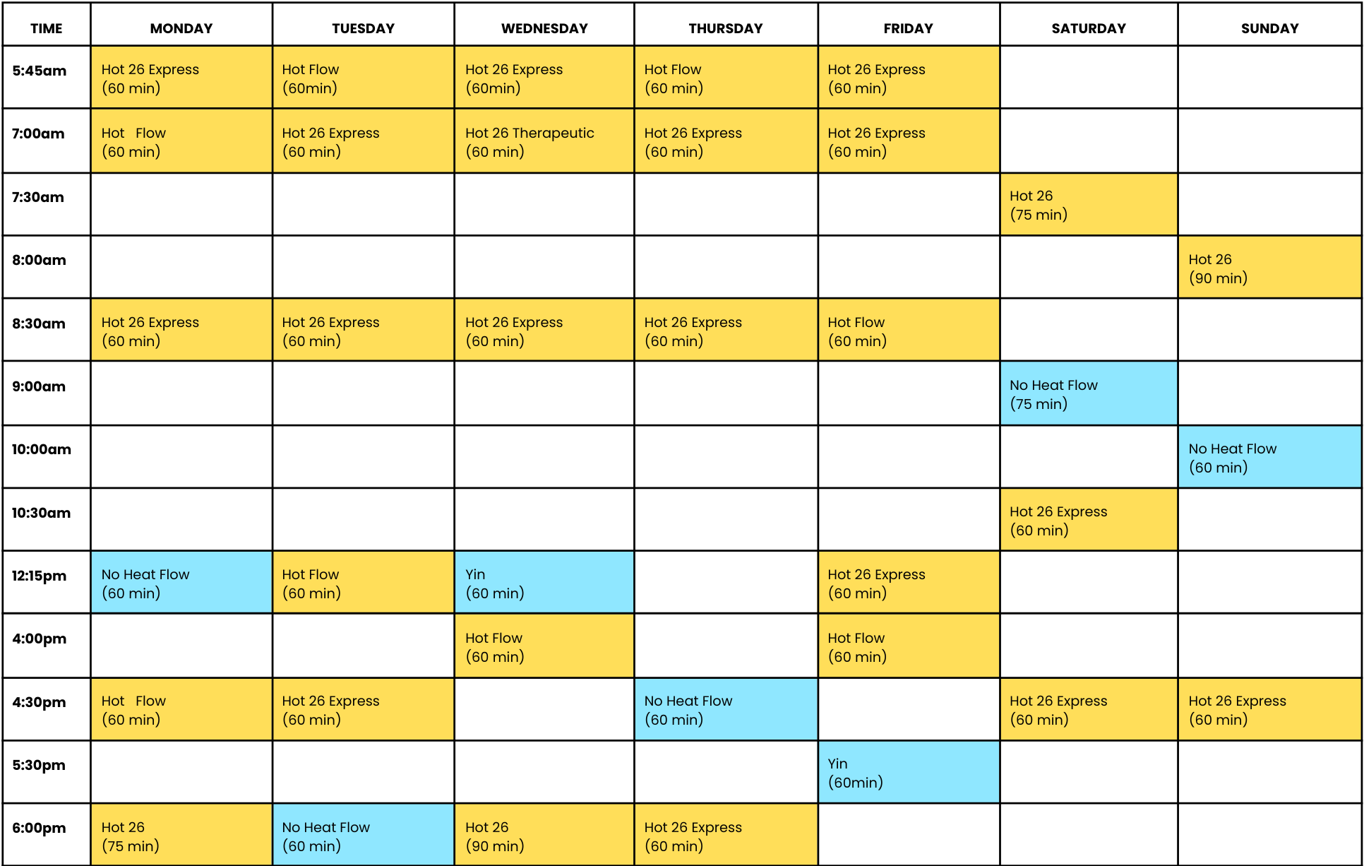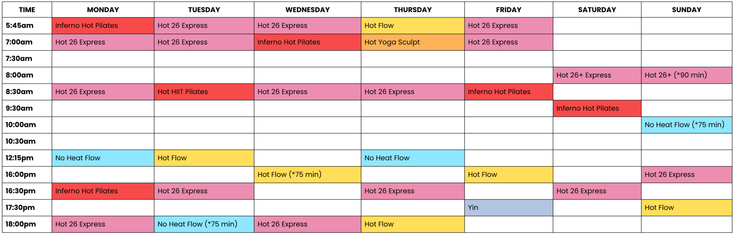 * All classes are 60 minutes unless otherwise indicated as (*75 min) or (*90 min)